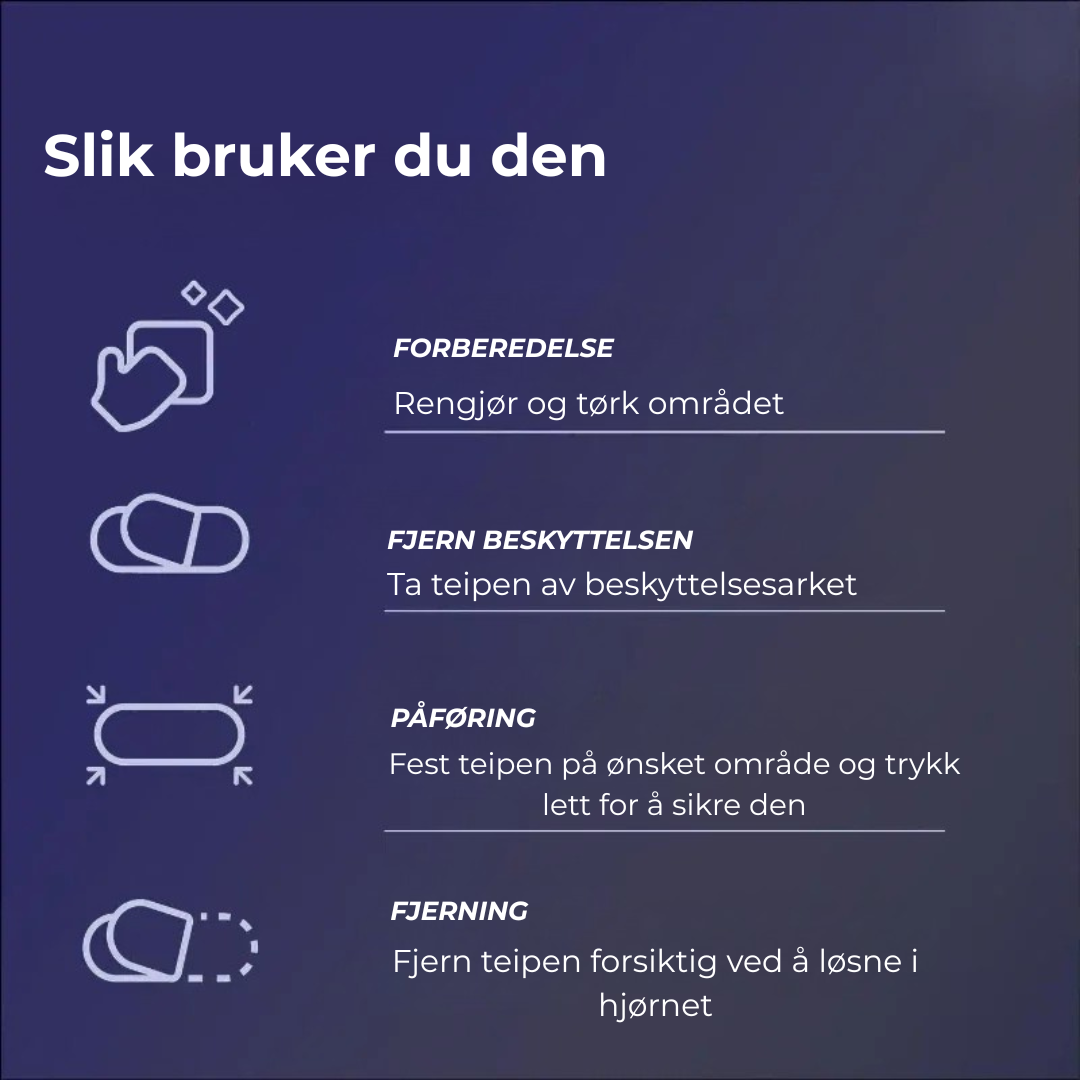 Enkel bruk – Fest teipen før leggetid, og pust naturlig gjennom nesen.