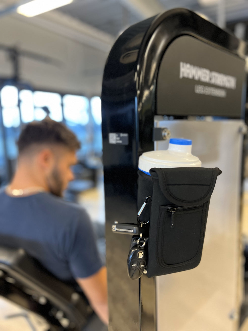 Den magnetiske flaskeholderen er en smart designet bag med en innebygd magnet som festes til magnetiske overflater, som treningsutstyr. Den er perfekt for å holde flasken og andre eiendeler sikre og lett tilgjengelige under treningen eller når du er på farten.