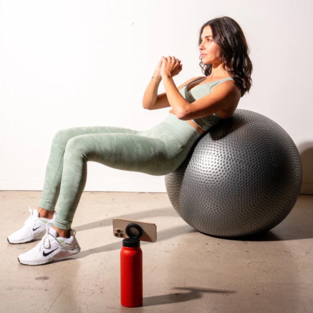 Den er utrolig praktisk når du vil se på treningsvideoer eller følge en økt mens du trener. Mobilen sitter stødig på flasken, slik at du ser alt uten å holde den i hånden.